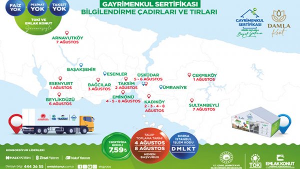 Gayrimenkul sertifikası bilgilendirme tır ve çadırları İstanbul meydanlarında