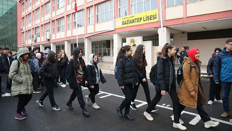 6 Şubat'ta merkez üssü Kahramanmaraş olan depremlerden etkilenen Gaziantep'teki okullarda tadilat ve onarım çalışmalarının tamamlanmasının ardından öğrenciler için ders zili çaldı.