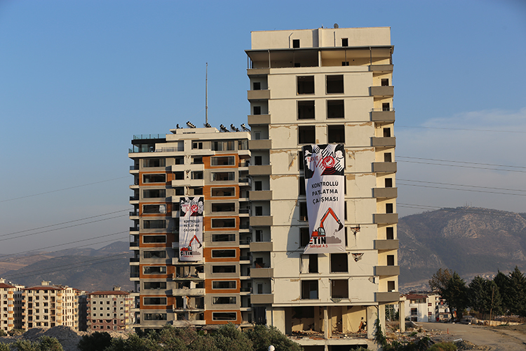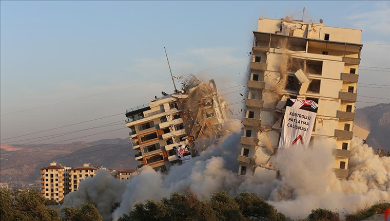 Kahramanmaraş merkezli depremlerden etkilenen Hatay'da, ağır hasarlı 10 bina patlayıcı kullanılarak kontrollü biçimde yıkıldı.