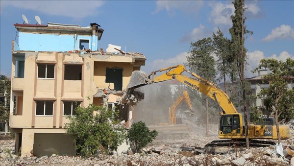 Kent merkezi ve bazı ilçelerde, afetin ardından yıkım kararı verilen yapılardaki çalışmalar devam etti.