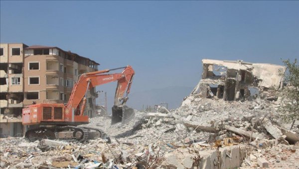 Yaşanan depremlerde ağır hasar alan merkez ilçe Antakya ve Defne başta olmak üzere İskenderun, Kırıkhan ve Samandağ ilçelerindeki binalarda yıkım çalışmaları devam ediyor.
