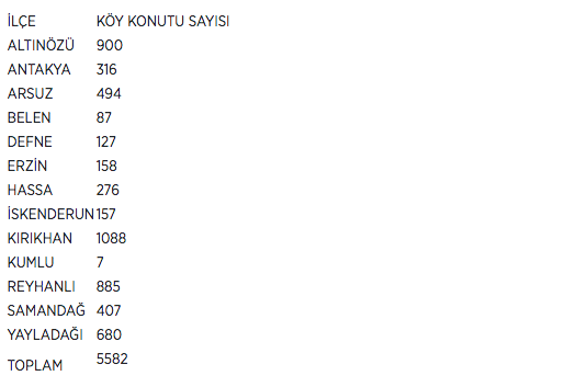 Hatay'ın ilçelerine göre inşa edilecek köy tipi afet evlerinin sayısı şöyle: