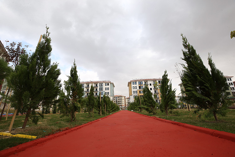 Site içinde bulunan yeşil alanda ise ilçenin toprak yapısına uygun yetişebilecek ağaçlar dikildi.