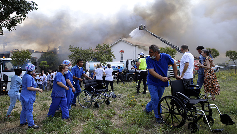 Sağlık çalışanları, itfaiye erleri, zabıta ekipleri ve vatandaşlar, yaşlıları sedye ve tekerlekli sandalyelerle hastaneden uzaklaştırdı. Hastalar bölgedeki diğer hastanelere sevk edildi.