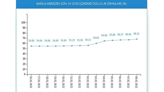 Özellikle son 20 gündür peş peşe gelen kar ve sağanağın ardından barajların doluluk oranı yükseldi.