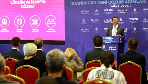 İmamoğlu, Haliç Kongre Merkezi'nde düzenlenen "İstanbul'un Yeni Çözüm Adımları" konulu toplantıda, kentin olası depreme hazırlık süreciyle ilgili bilgiler paylaştı.