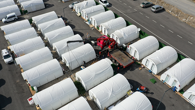 Afetten etkilenen kentte bir yandan kalıcı konutların inşası sürerken diğer taraftan da konteynerlerde barınan depremzedelerin hava koşullarından olumsuz etkilenmemesi için çalışma gerçekleştiriliyor.