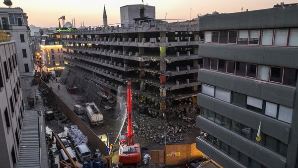 Beyoğlu Karaköy'deki İstanbul'un ilk katlı otoparkının, "Kent Meydanı ve Zemin Altı Otoparkı" projesi kapsamında yıkımına başlandı.