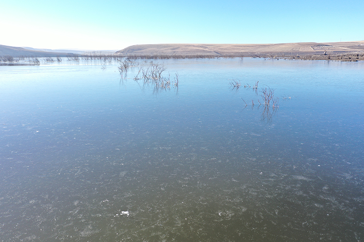 Büyük sulama projeleri alanlarının dışında kalan kırsal kesimlerin kısa sürede sulu tarıma geçmesi ve civardaki içme, kullanma suyu ihtiyacının karşılanması hedefiyle yapılan Kars Barajı'nın yüzeyi kısmen dondu.