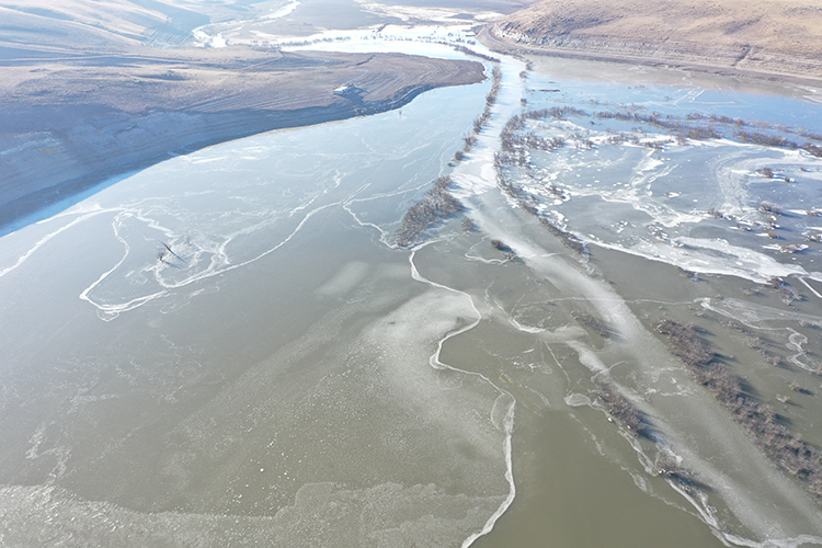 Kars Barajı'nın yüzeyi kısmen dondu!