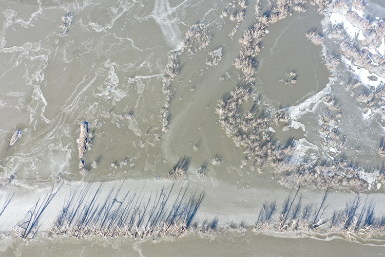 Boğazköy köyü mevkisi buzla kaplanan baraj gölü dron ile görüntülendi.