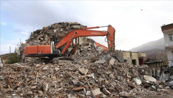 Depremlerin etkilediği kentte yıkım kararı bulunan ağır hasarlı binalardaki çalışmalar bugün de sürdü.