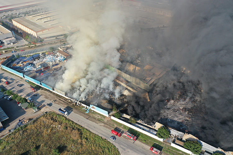 OSB'deki geri dönüşüm ve demir çelik üretimi yapılan fabrikada dün saat 16.20 sıralarında henüz belirlenemeyen nedenle yangın çıktı. Fabrikada depolanan poliüretanın yanıcı olması ve rüzgarın etkisiyle yangın hızla büyüdü ve fabrikanın idari binasına da sıçradı.