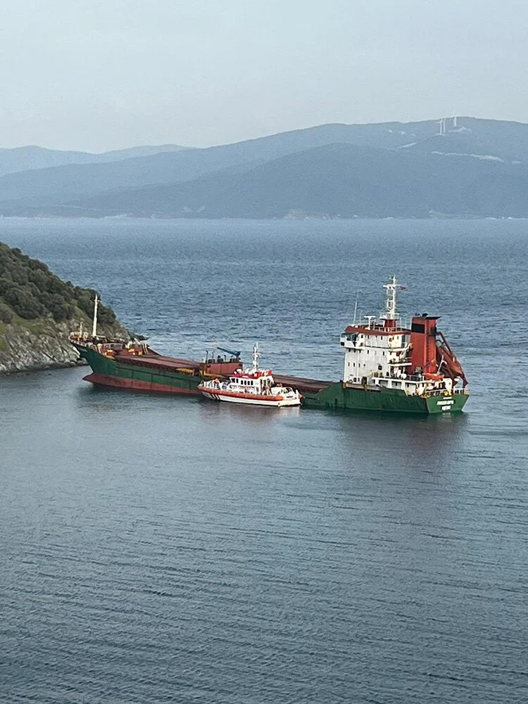Balıkesir'e bağlı Marmara Adası'nda karaya oturan gemi, Kıyı Emniyeti Genel Müdürlüğü (KEGM) ekiplerince kurtarıldı.