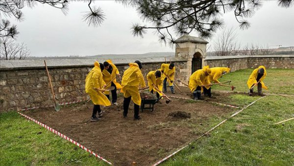 Edirne Kültür Varlıklarını Koruma Bölge Kurulunun tesciliyle Muradiye Camisi bahçesinde Edirne Müze Müdürlüğü ve Edirne Özel İdare ekiplerince kazı çalışmalarına başlandı.