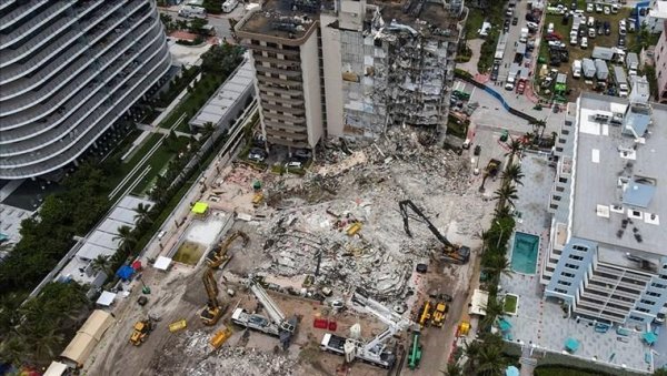 Miami Beach'in kuzeyinde, yaklaşık 5 bin 600 nüfuslu Surfside yerleşkesinde, 24 Haziran'da 13 katlı 270 dairelik ""Champlain Towers"" adlı lüks kondo binasının yarısı aniden çökmüştü.
