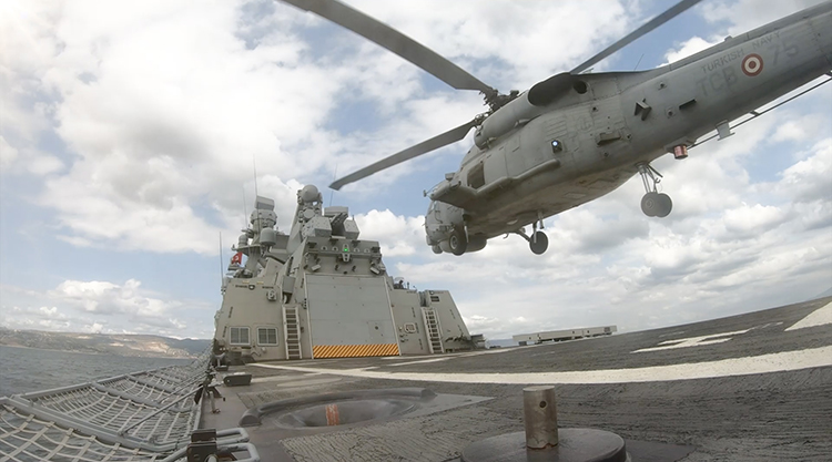 KUŞKAPANI sistemi kullanılarak yapılan ilk helikopter iniş operasyonlarını Deniz Hava Komutanlığının tek kadın pilotu Deniz Yüzbaşı Hatice Yeşiltaş gerçekleştirdi.