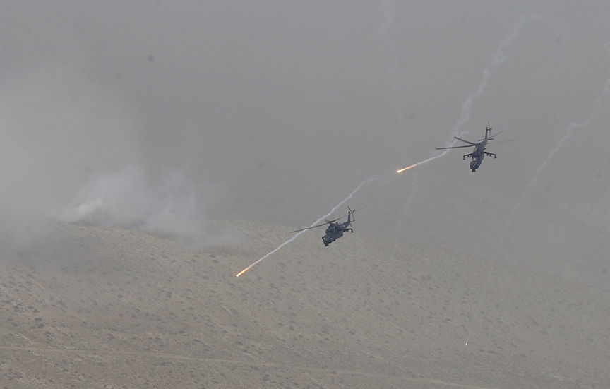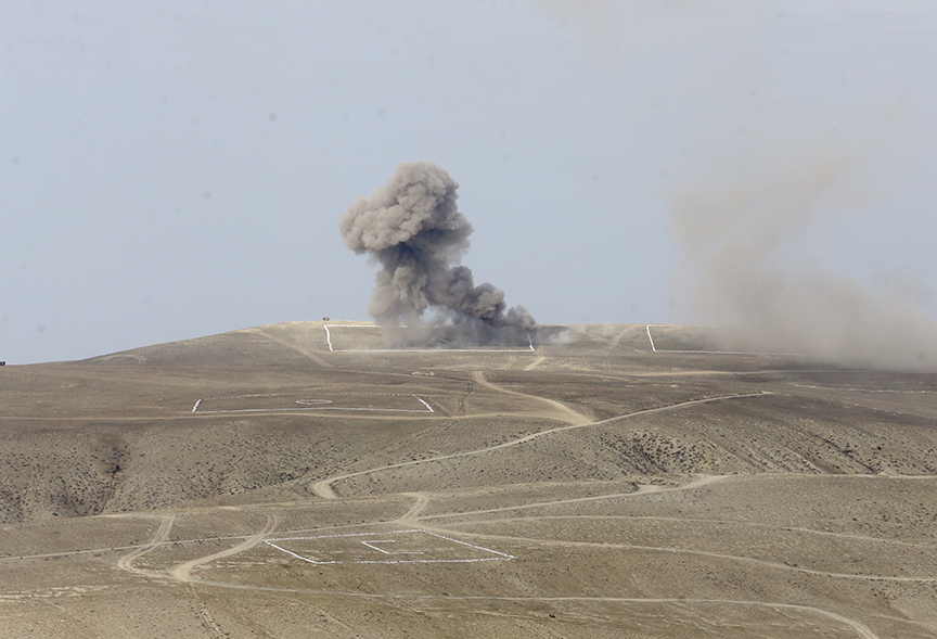 Türkiye ve Azerbaycan silahlı kuvvetlerinin Azerbaycan'da düzenlediği "Mustafa Kemal Atatürk 2023" ortak tatbikatının Seçkin Gözlemci Günü'nde temsili düşman hedefleri Türk F-16'ları ve Bayraktar TB2 SİHA'larla yapılan isabetli atışlarla imha edildi.