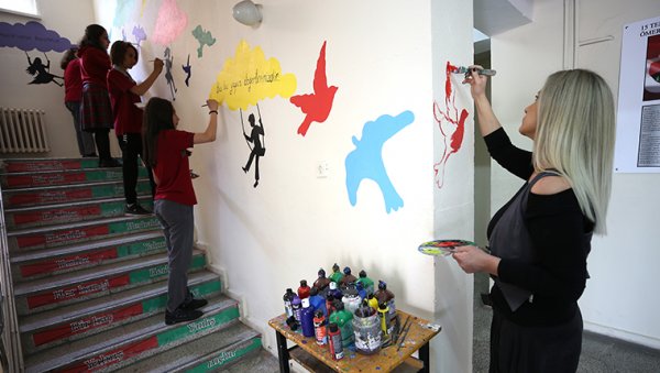 Projeye katılan öğrencilerden Sudenaz Soydemir de günlerinin büyük bölümünü geçirdikleri eğitim yuvalarına kalıcı eser bırakmanın mutluluğunu yaşadıklarını anlatarak, "Duvarların daha önceki hali kötüydü, kendimizden izler bırakarak okulumuzu güzelleştirmeye çalışıyoruz. Bu eserlerin korunacağını da düşünüyorum." diye konuştu.