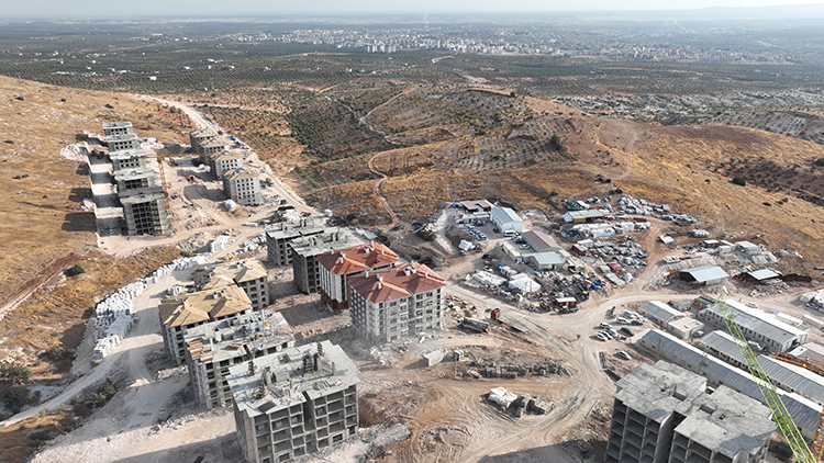 Kahramanmaraş merkezli depremlerden etkilenen Gaziantep'in Nizip ilçesinde, 6 ay önce temeli atılan ve 2 bin 500 daireden oluşan projede inşaat çalışmaları hızla sürüyor.
