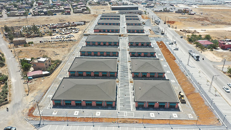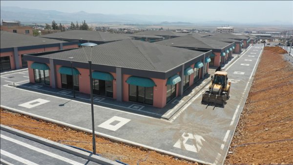 Yine Tek Yürek Meydanı'nın yakınlarında 70, Bademli Mahallesi'ndeki kalıcı konutlar civarında yapılan çarşıda da 30 iş yerinin inşası tüm hızıyla sürüyor.