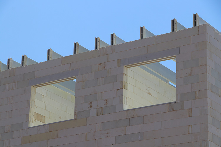Özel bir firma tarafından cam elyaf ve mineral tozu gibi geri dönüşüm malzemelerinden üretilen kompozit bloklarla 400 metrekarelik köy evinin kaba inşaatı kısa sürede tamamlanabiliyor.