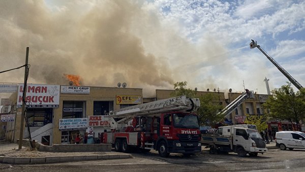 Ekipler, yangının çatıya ulaşmasının ardından diğer iş yerlerine sıçramaması için çalışmalarını sürdürüyor.