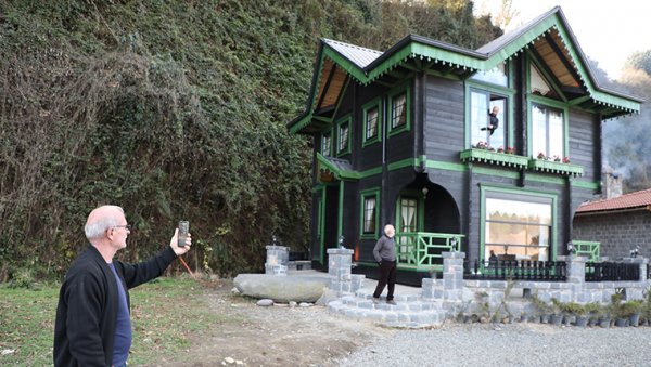 Rize'nin Ardeşen ilçesinde Cemil Eksilmez, yere döşediği raylı sistem üzerine çark ve tekerler yardımı ile 360 derece dönen 2 katlı ev yaptı.