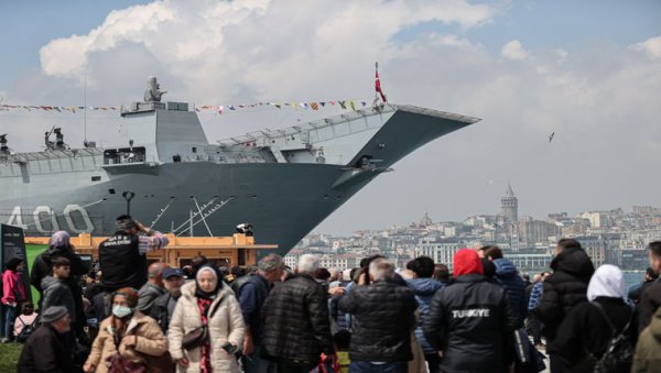 Türk donanmasının hizmetine 10 Nisan'da giren Türkiye'nin en büyük askeri gemisi TCG Anadolu'yu ziyaret etmek isteyen vatandaşlar, Sarayburnu Limanı'ndan Ahırkapı'ya kadar kuyruk oluşturdu.