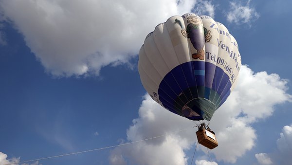 Ziyaretçiler tarafından büyük ilgi gören balon, basın mensuplarının katılımıyla yaklaşık 50 metre yükseğe havalandı.