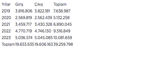 2019-2023 döneminde sınır kapılarından giriş-çıkış yapan araç sayıları şöyle: