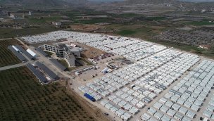 İnsan Hak ve Hürriyetleri İnsani Yardım Vakfı öncülüğünde Suriye'nin Türkiye sınırına yakınına konteyner kent yapılıyor