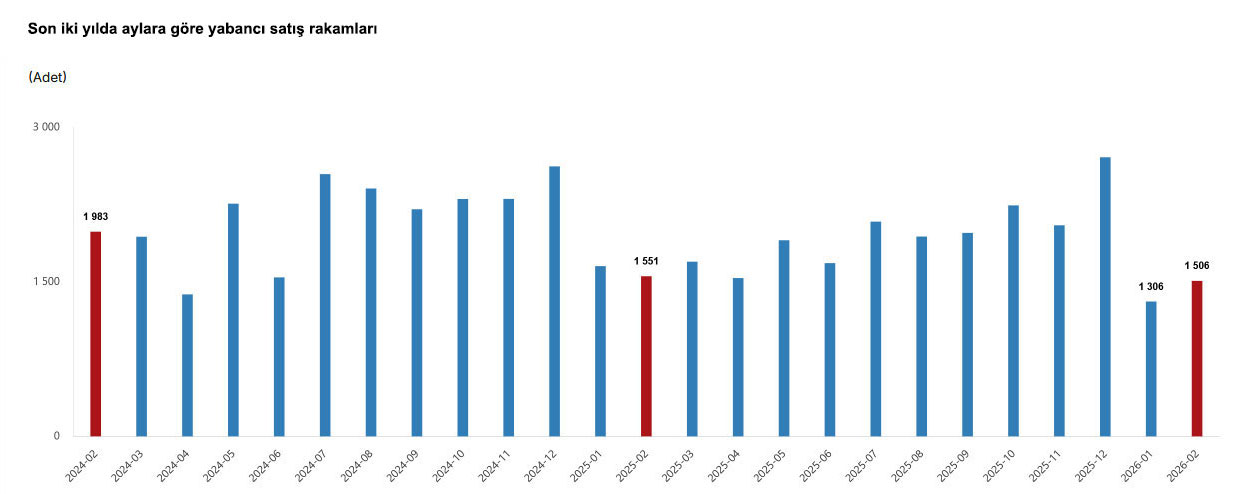 Yabancılara Şubat ayında bin 506 konut satışı gerçekleşti