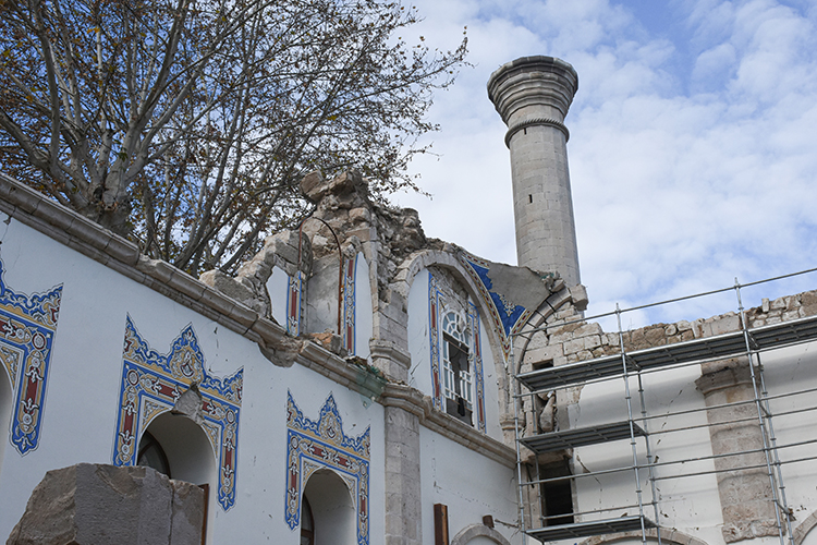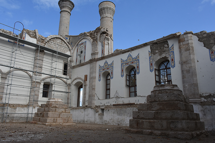 Depremde cami kubbesinin olduğu gibi çöktüğünü, iki minarenin ise şerefenin üst kısmından yıkıldığını anımsatan Bacanlı, Kültür ve Turizm Bakanlığı ile Vakıflar Genel Müdürlüğünün talimatlarıyla camide önce hasar tespitine ardından ayağa kaldırılması için çalışmalara başladıklarını ifade etti.