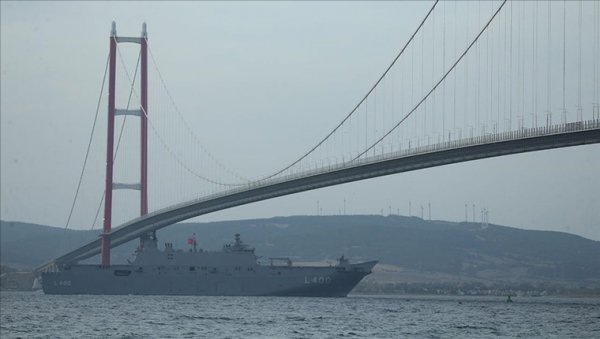 TCG Anadolu, Çanakkale Boğazı'na saat 16.00 sıralarında güneyden giriş yaptı.
