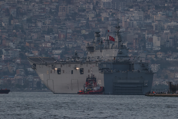 Türk Silahlı Kuvvetlerinin en büyük savaş gemisi, yerli ve milli üretim TCG Anadolu, planlı bir tatbikata katılmak üzere İzmir Alsancak Limanı'ndan ayrıldı.