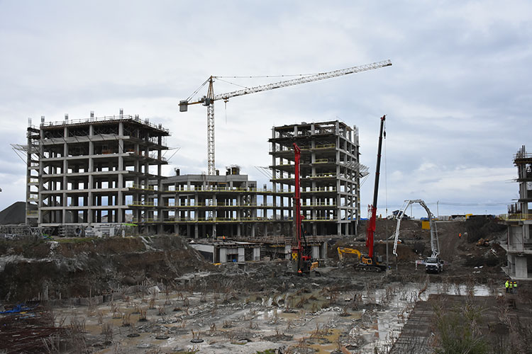 Temelindeki 762 sismik izolatörle (Depremin hasar potansiyelini düşürmek için binalarda kullanılan yardımcı araç), sismik izolatörlü olarak da tasarlanan hastanenin, inşaatında yüzde 30 fiziki gerçekleşme sağlandı.
