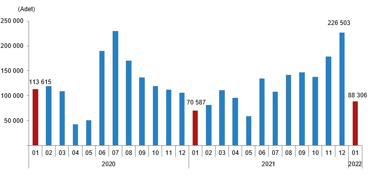 TÜİK tarafından açıklanan konut satış istatistiklerine göre Ocak 2022 döneminde toplam 88 bin 306 konut satışı gerçekleştirildi. 2021 yılının aynı dönemine göre konut satışları yüzde 25,1 oranında artış yaşadı. Ocak 2022 döneminde en fazla konut satışının gerçekleştiği şehir ise 15 bin 110 ile İstanbul oldu.