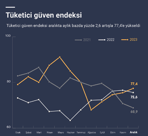 Tüketici güven endeksi aralıkta aylık bazda yüzde 2,6 artarak 77,4 oldu!