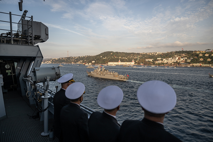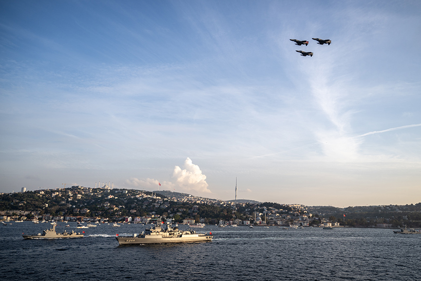 "Nizam Cumhuriyet" olarak ifade edilen düzenin alınmasının ardından gemiler, resmigeçit için saat 17.00'de İstanbul Boğazı'na güney istikametinden girdi.