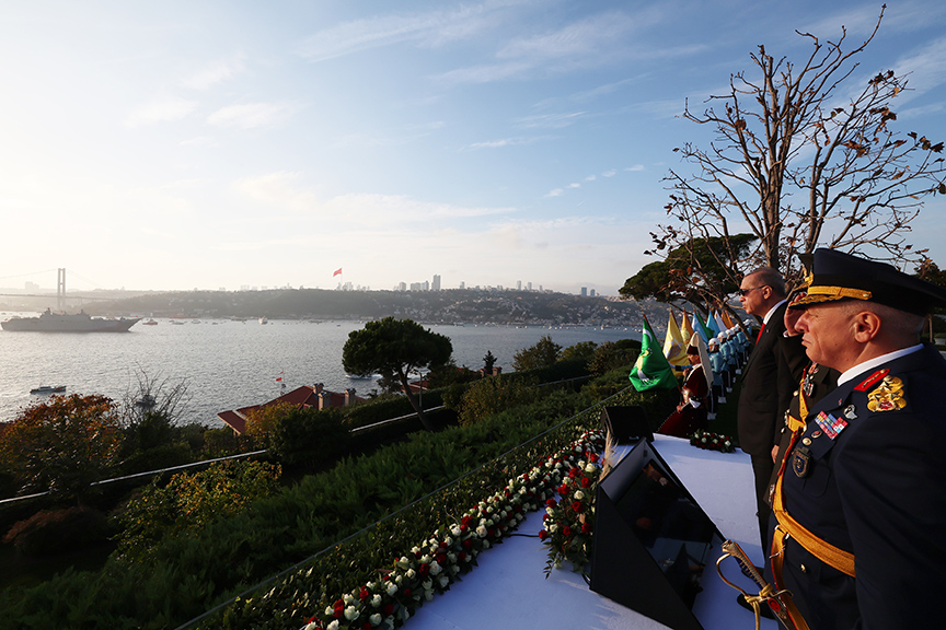 TCG Anadolu rehberliğindeki gemiler Vahdettin Köşkü’nün karşısına geldiğinde Deniz Kuvvetleri Komutanlığı unsurları "çimariva" adı verilen denizcilere ait selamlama yöntemi ile Cumhurbaşkanı Erdoğan'ı selamladı.