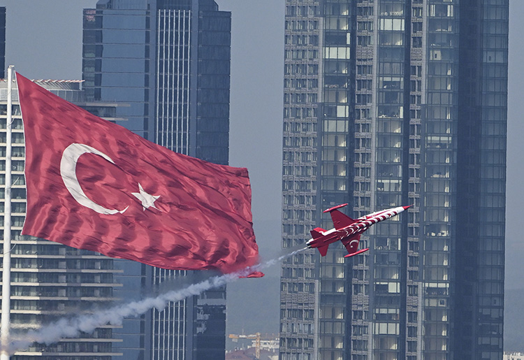 Türk Yıldızları ve SOLOTÜRK ile F-16 ve F-4E tipi jetler, Cumhuriyet'in 100. yılı kutlamaları kapsamında 29 Ekim Pazar günü İstanbul Boğazı'nda gerçekleştirecekleri gösteri uçuşu öncesinde prova yaptı.