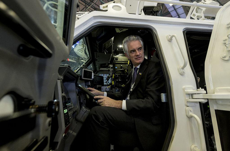 Nurol Holding Yönetim Kurulu Başkan Yardımcısı Oğuz Çarmıklı'nın ev sahipliği yaptığı ziyarette İngiliz heyet, YÖRÜK-L (NMS-L), YÖRÜK (NMS) EWB, EJDER YALÇIN ve EJDER KUNTER araçlarına girdi ve bunlar hakkında bilgi aldı.