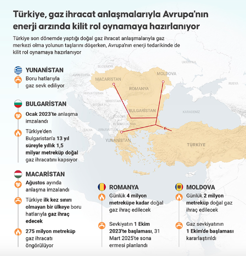 Türkiye son dönemde yaptığı doğal gaz ihracat anlaşmalarıyla gaz merkezi olma yolunun taşlarını döşerken, Avrupa'nın enerji tedarikinde de kilit rol oynamaya hazırlanıyor.