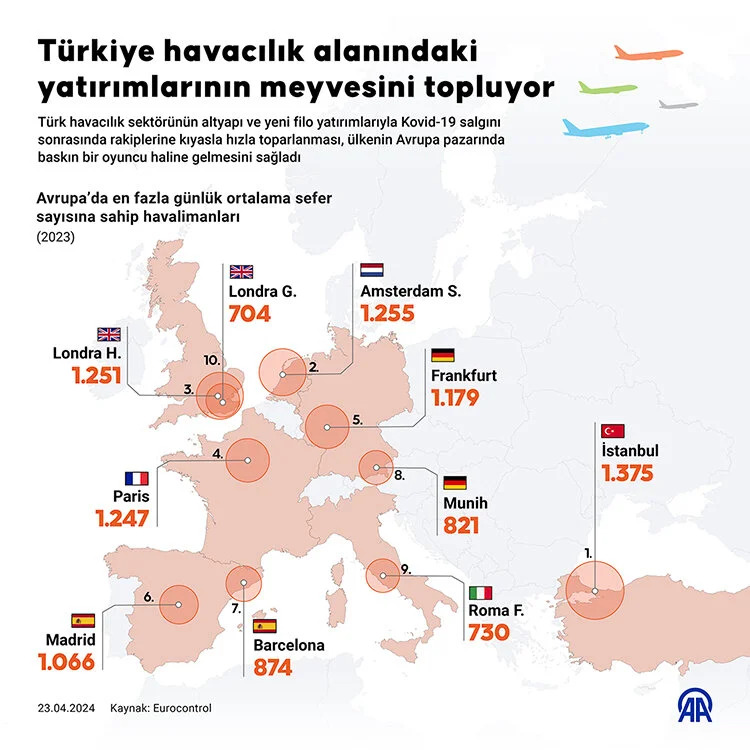 Türk havacılık sektörünün altyapı ve yeni filo yatırımlarıyla Kovid-19 salgını sonrasında rakiplerine kıyasla hızla toparlanması, ülkenin Avrupa pazarında baskın bir oyuncu haline gelmesini sağladı. Türkiye'nin yurt dışında yaşayan diasporası ve turizm sektörü de bu büyümeye katkı sundu.