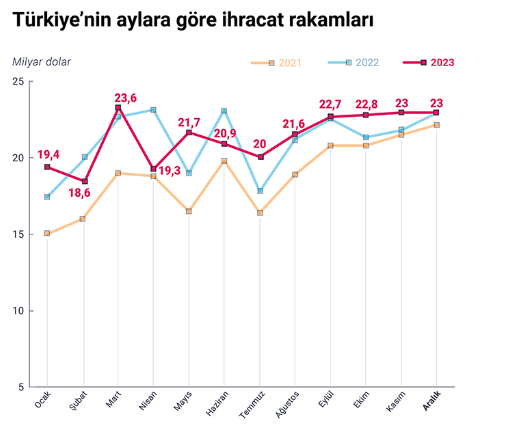 Ticaret Bakanlığı ve Türkiye İstatistik Kurumu işbirliğiyle oluşturulan geçen yılın aralık ayı ve 2023 yılı geneline ilişkin geçici dış ticaret verileri açıklandı.