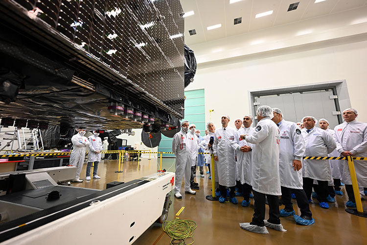 Türksat 6A'nın yapıldığı ve akustik, ısıl, vakum, titreşim başta olmak üzere fırlatma aşamasından uzaya kadar maruz kalacağı ortamlarda karşılaşabileceği zorluklara yapısal dayanıklılığının test edildiği TUSAŞ Uzay Sistemleri Entegrasyon ve Test (USET) Merkezi'ni görüntüledi.
