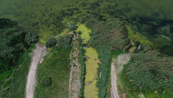Uluabat Gölü'nün rengi alg patlamasıyla yeşile büründü