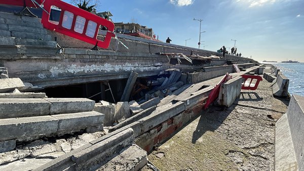 Üsküdar sahilde yürüyüş yolunun altındaki kısımda çökme oldu