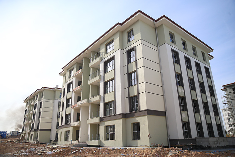 Depremlerin en fazla yıkıma yol açtığı kentler arasında yer alan Malatya'da, Yeşilyurt ilçesine bağlı İkizce Mahallesi'nde de etaplar halinde afet konutları yükseliyor.